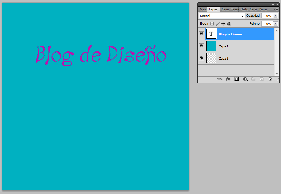 Si, por algún motivo, no nos quedara de esta manera y, por ejemplo, no se viera el texto, eso es que las capas están mal colocadas. Para recolocarlas a nuestro gusto solo tenemos que, con la capa seleccionada, clicar en ella y, sin soltar, moverla arriba o abajo. Las que están mas arriba se superpondrán, por orden, sobre las que están más abajo.